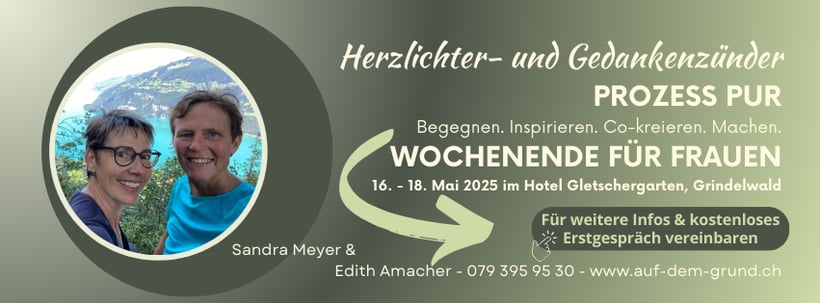 Sandra Meyer und ich gestalten ein beHERZtes Herzlichter- & Gedankenzünder-Prozess PUR für Frauen, die sich bewusst eine Auszeit gönnen möchten, um eigene Themen tiefgründig zu reflektieren und persönliche Erkenntnisse zu gewinnen. Gemeinsam entdecken wir neue Möglichkeiten, die inspirieren und erMUTigen. Diese AHA-Erkenntnisse aus der co-kreativen Zusammenarbeit helfen Dir dabei, diese Einsichten souverän in Deinem Alltag umzusetzen.